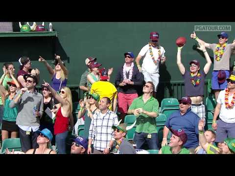 The Wilson golfer did his bit of the Superbowl ball provider last year, kicking off a tee and from his hands to the delight of the fans at the 16th during the third round.